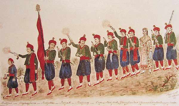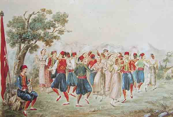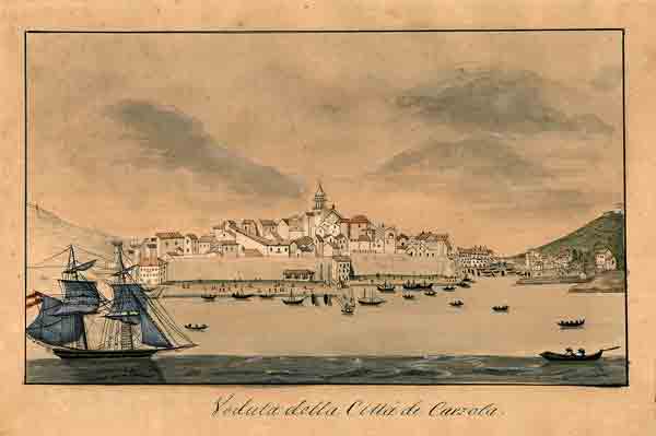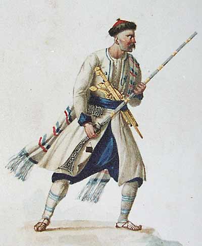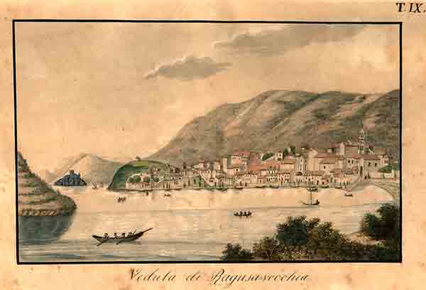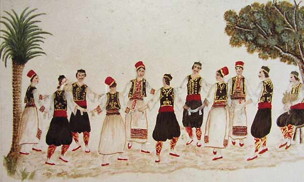 These images, listed below, are mostly of villages, national dress, social customs, etc. They would make good editions to a family history collection and some would look good framed, on a living-room wall. These images, as shown on this website, are for the computer screen only and are not of good enough quality for framing. To obtain good quality prints or TIF images on disk, please contact us and we will send you the details of who to contact and how. The prices are quite reasonable -- Archive images are often less than $10 each plus shipping costs. [Also see about Konavlian folk artist Miho S"is"a.] ------------------------ Dance scene #1 (near Dubrovnik). From the Martechelli print collection in the Dubrovnik Archive, printed in 1892. Dance scene #2 (Konavle). From the Martechelli print collection in the Dubrovnik Archive, printed in 1892. Wedding scene (near Dubrovnik). From the Martechelli print collection in the Dubrovnik Archive, printed in 1892. This depicts a wedding procession and labels each of the participants. Soldier of the Republic of Ragusa. From the Martechelli print collection in the Dubrovnik Archive, printed in 1892. Montenegran man. From the Martechelli print collection in the Dubrovnik Archive, printed in 1892. Montenegro is not part of Croatia but these are too good to not include here. Montenegran woman. From the Martechelli print collection in the Dubrovnik Archive, printed in 1892. Cavtat harbor (Ragusavecchia is the old Italian name for Cavtat). From the Vitelleschi collection (1827) in the Dubrovnik Archive. Cavtat is along the Adriatic coast, SE of Dubrovnik. Korc"ula harbor (Carzola is Korc"ula in Italian). From the Vitelleschi collection (1827) in the Dubrovnik Archive. Korc"ula is an island and town NW of Dubrovnik. Island of S"ipan. From the Vitelleschi collection (1827) in the Dubrovnik Archive. S"ipan is an island and town NW of Dubrovnik. |