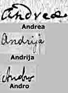 | Hr: Andreja, Andrija, Andro It: Andrea Lt: Andreas En: Andrew |