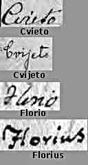 | Hr: Cvieto, Cvijeto It: Florio Lt: Florius En: no equivalent |