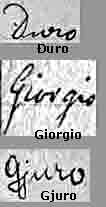| Hr: D'uro, Djuro, Gjuro, Jure It: Giorgio Lt: En: George |