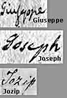 | Hr: Josip, Jozip Nk: Jos"ko, Jozo It: Giuseppe Lt: En: Joseph, Joe |