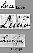 | Hr: Luce, Lucija It: Lucia Lt: En: Lucy, Lucille, Louise, Lois |