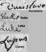 | Hr: Luka Nk: Vuka, Vuko It: Lt: Lupus, Vukislav En: Luke, Louis |