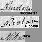 | Hr: Nike It: Nicoleta Lt: Nicolaa En: Nickie (not common) |