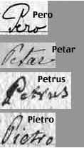 | Hr: Pero, Petar It: Pietro Lt: Petrus En: Peter, Pete |