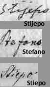 | Hr: Stiepo, Stijepo, Stepan It: Stefan Lt: En: Stephen, Steven, Steve |