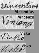 | Hr: Vicko, Visko, Vinko It: Vincenzo Lt: Vincentius En: Vincent, Vince, "William" |