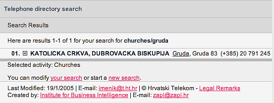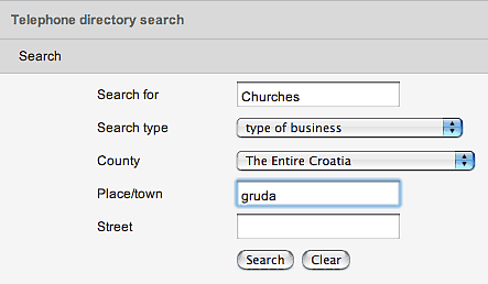 Example #3: Finding the church by using the Croatian on-line phone book. In this example we try to find the church(es) for the 3 villages found in Example #1. You must read that example first to make sense of this one. Also Example #2 is suggested reading. In Example #1 we have these 3 villages (Ploc"ice, Poljice and Gruda) which we know are fairly close together. We found the churches for them in a book called Stanovnis"tvo Konavla #2 by Vekaric' and Kapetanic'. But that was too convenient. Most people will not have access to this book. So let's try to find the churches for these villages using the Croatian on-line phone directory which is located here: http://www.tportal.hr/imenik/default.asp?lang=1. We will now search for church addresses in these 3 villages. For Gruda, fill out the page as shown below: ![]() Click on "Search" and you will get the following: ![]() which doesn't show the postal code. So click on the small box with a + sign in it and you will see: ![]() which shows the postal code as HR-20215. If you click on the underlined GRUDA (2 images above) you will see a small map which tells you very little. But then you can click for a larger version of the map which tells you more. But you must still know some Croatian geography to know exactly where Gruda is. The correct mailing address for this church is: Katolic"ka Crkva [Catholic Church] Gruda 83 [street address -- not necessary if there is only one church in town] HR-20215, Gruda Croatia, Europe [Be sure to write AIRMAIL on the envelope and pay for airmail shipment otherwise it will take 6-8 weeks to get there. Airmail takes 7-10 days. Here's how to write the letter.] Now if you use the same procedure for Ploc"ice by filling in "plocice" (without the quotes) in the window as shown in the top image on this page, you will get the correct results. But, for some reason, if you choose the Dubrovnik/Neretva area (instead of "The Entire Croatia") you will get no results. This search page is a bit quirky and you just have to play with it. It's new and the bugs may eventually be fixed. For Poljice you get no results. So that means there are churches in the villages of Gruda and Ploc"ice but none in Poljice. If you read Example #1 you will see that there are Paljetaks in Gruda and Poljice. We now know that Gruda has a church and Poljice does not. We also know that Gruda and Poljice are within a few miles of each other. Does the Gruda church serve the village of Poljice? The only way to find out is to write the church in Gruda and ask. Don't worry -- they will know. In your letter, ask them to forward the letter to the proper church. Here's how to write the letter. Now let's cheat a little and go to a map that shows the various villages in this part of Croatia and the churches. You can see that the village of Poljice is served by the church in Ploc"ice. The villages that have churches are boxed. |