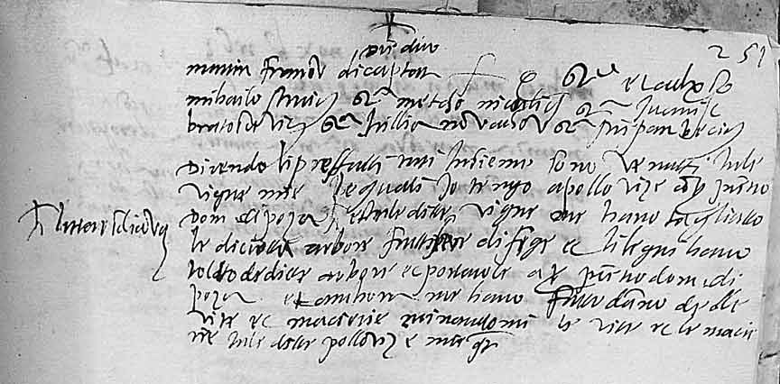 See below the image for comments. Problem 1. This is a document from the Dubrovnik Archives dated 1563 and written in Italian. JPG, 55K. Tom: mail@reuniontips.com. The image is 12 inches wide so would print out best in landscape mode. The 2nd line down, first word, is "mihailo" (a form of Michael). Then on the same line, the 4th and 5th words are "metcho nicolich" (a man's name). These are my family and I'd like to know what the rest of it says. I've been told that it may be some type of criminal charge or disciplinary action (sounds like my family, all right). ![]() Comments: [None yet.] [Please refer to Problem 1, if commenting.] |