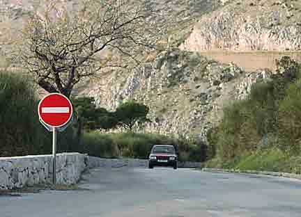 These tips and stories (below) were submitted by readers of this website. If you have a tale to tell, please see how to submit material, here. What's the hurry? I drive an old Yugo in Croatia, so it's understandable that many other cars pass me on the highway. But I can't understand how cars older than mine pass me. My car is in pretty good shape; the engine still has a lot of power (as much as an old Yugo engine can have). So how can I get passed by a 1980 Zastava? I don't get it. It happens all the time. They must have ways of souping up engines there. And speaking of driving: The only time a Croatian is in a hurry is on the highway. Quick service at a restaurant? Forget it. Want to pay your bill and get out of there? The paying of the bill is always last priority at a restaurant. Orders must be taken first; then delivery of food; then clearing the table; then sweeping the floor; last on the list is taking the customer's money. It sounds like a joke but it's absolutely true: they will clear the table before they take your money -- even when you are standing near the cash register with money in hand. No one will hurry to do anything for you in Croatia. I'm pretty sure that it's an insult to even put someone in the position of having to hurry. "Serving the customer" is not in their vocabulary, at least not if hurrying is part of the expected service. So what's the big deal on the highway? Everyone is trying to be first. I've seen absolutely insane attempts at passing. I've had people pass me as if their life depended on it, and then turn off into their driveway 100 meters later. I think I know what's happening here. Croatians, especially the younger ones, would really like to hurry but their culture won't allow it. It's just not cool. They would be ridiculed if they hurried. So they take out their frustrations in the one allowable place: the highway. Some Driving Tips Driving in Croatia is not particularly difficult once you get used to the narrow roads. They drive on the right, as in all of Continental Europe. The one main difference is that you cannot turn right at a red light. Also the "do not enter" sign looks like this. It took me a while to figure that one out. No seat belts will cost you 500 kunas -- and they will ask you for it right there (they give a receipt). And you must drive with your lights on, day or night. Parking is very difficult in all of the larger towns and cities, especially during the summer. That's the bad part. The good part is that you can park almost anywhere as long as you don't block traffic. See a place on the other side of the street? No problem! Just zip over there and park facing the wrong way. I see cars straddling the curbs and up on the sidewalks all the time, though I've not had the courage to park that way myself. Just stay away from bus stops and cross walks. Stop lights have a warning yellow just like in the States. And they also have a warning yellow just before the red turns to green. This gives you time to put it in gear if you are first in line (and if you have a stick shift). But seeing the light itself can be a problem if you are first in line. The lights are not conveniently placed. The light is often directly above the first car in line. I've had to put my head out the window and look straight above me to see the red light change to green (after it goes to yellow). Of course, you could just wait until the cars behind you start honking (and they will). Radar is used in some places. Cars coming toward you flashing their lights is usually an indication that radar is ahead or perhaps a routine police stop. These police stops are very common and should not be taken personally. The police just like to stop people a lot. There's not a whole lot else to do in a country that has very little crime. The first year I was there I was stopped maybe 10-15 times. I've been told that foreigners never get tickets unless they do something particularly dangerous -- in which case they probably go to jail instead. |
